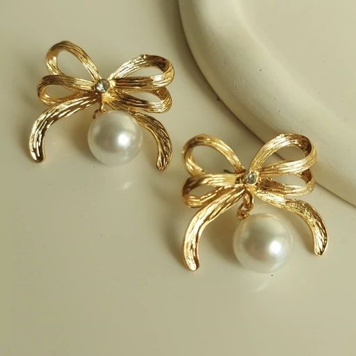 گوشواره زنانه مدل پاپیونی مرواریدی